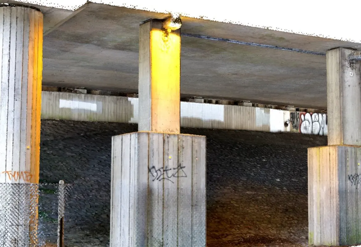We successfully produced survey grade accurate 2D and 3D digital data of the undersides and columns or pillars of the viaducts. The data was tied into the OS grid so it could be linked with other survey data like a topographical survey. It was also used to verify the <1cm of global accuracies.
